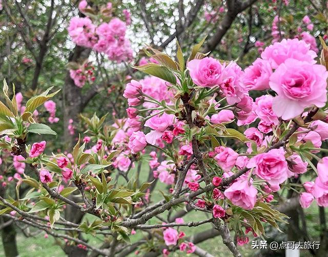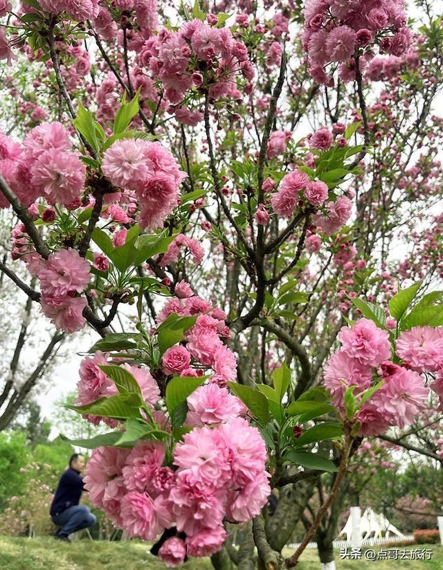 青龙湖湿地公园,是成都知名的樱花不雅赏地。园区万多株樱花,其中晚樱约有三千多株,当今正插足不雅赏期,齐全衔尾了吉野樱花尾期。主要赏花地在明定王次妃墓隔邻、不雅景平台、麓也营地周围。脚下的樱花,花朵硕大、花瓣稠密、花色深粉,花朵密集如绣球,垂挂在枝端,远眺如粉色绣球缀满枝干,不雅赏性极强。蜀王陵红墙与深粉关山樱撞色,古风与猖狂碰撞,穿汉服、淡色系长裙拍东谈主像,氛围感径直拉满。