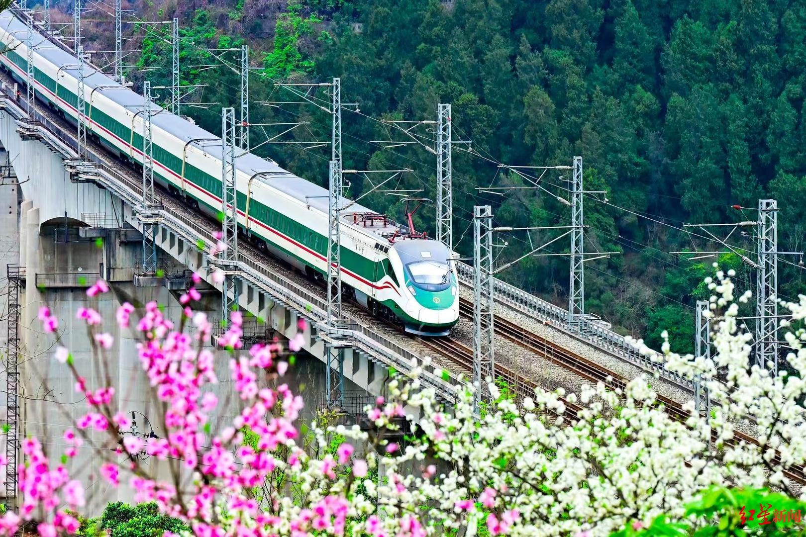 坐着高铁再会好意思好,春游假期时分,川渝黔三地传统民风作为丰富,如四川省皆江堰举办的放水节、元通简洁春台会等;重庆市磁器口、龚滩等举办传统的祭祀、手工艺展示作为;贵州省苗族跳花场、布依族挂青等民族节庆作为。沐日历间,川渝黔三地日均开行管内动车组856列,重联449列,全力自傲游客出行需求。