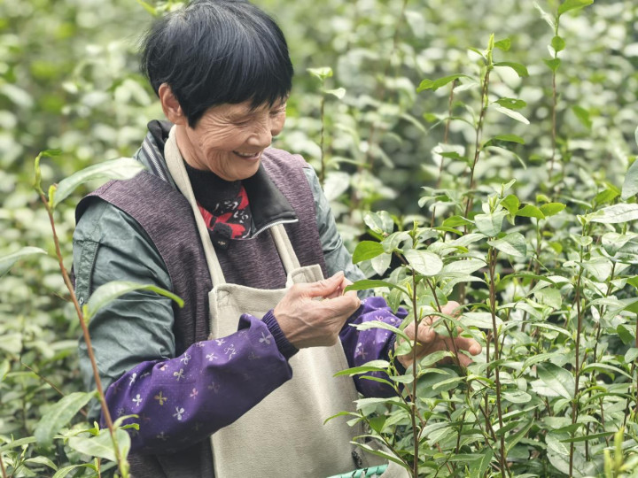 “早上很早就过来了。”正在戮力的采茶工张大姨满脸笑意,她一边采摘一边告诉记者,“咱们都是土产货东谈主,在家门口采茶,收货、顾家两不误。咱们这群老姐妹里,看成麻利的一个月能赚到一万多,我年级大些,采一个多月下来也能有八千来块。”
