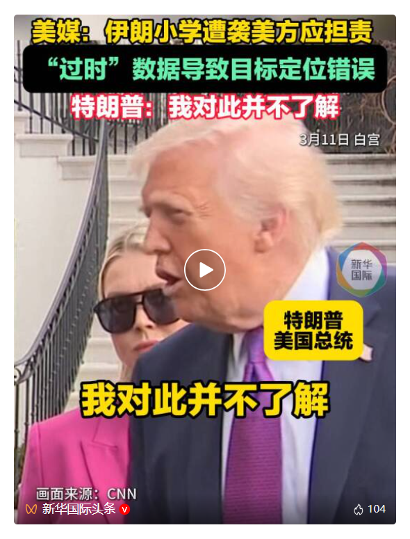 此前据央视新闻:好意思国琢磨员祥瑞布兰德12日说,好意思国总统特朗普应就伊朗小学遭袭事件作出说明注解,并条目好意思国国防部长赫格塞念念就此引咎离职。