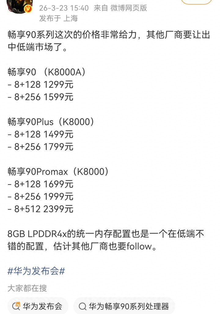 华为这波操作,真的让弘远用户欢乐不已——刚发布的畅享90系列,一亮相就抑遏了全球对畅享系列“初学级”的固有印象,这不光是一次产物升级,更像是华为全面追想,布局全市集的一个明肯定号:要把中低端市集,也稳稳拿回来!